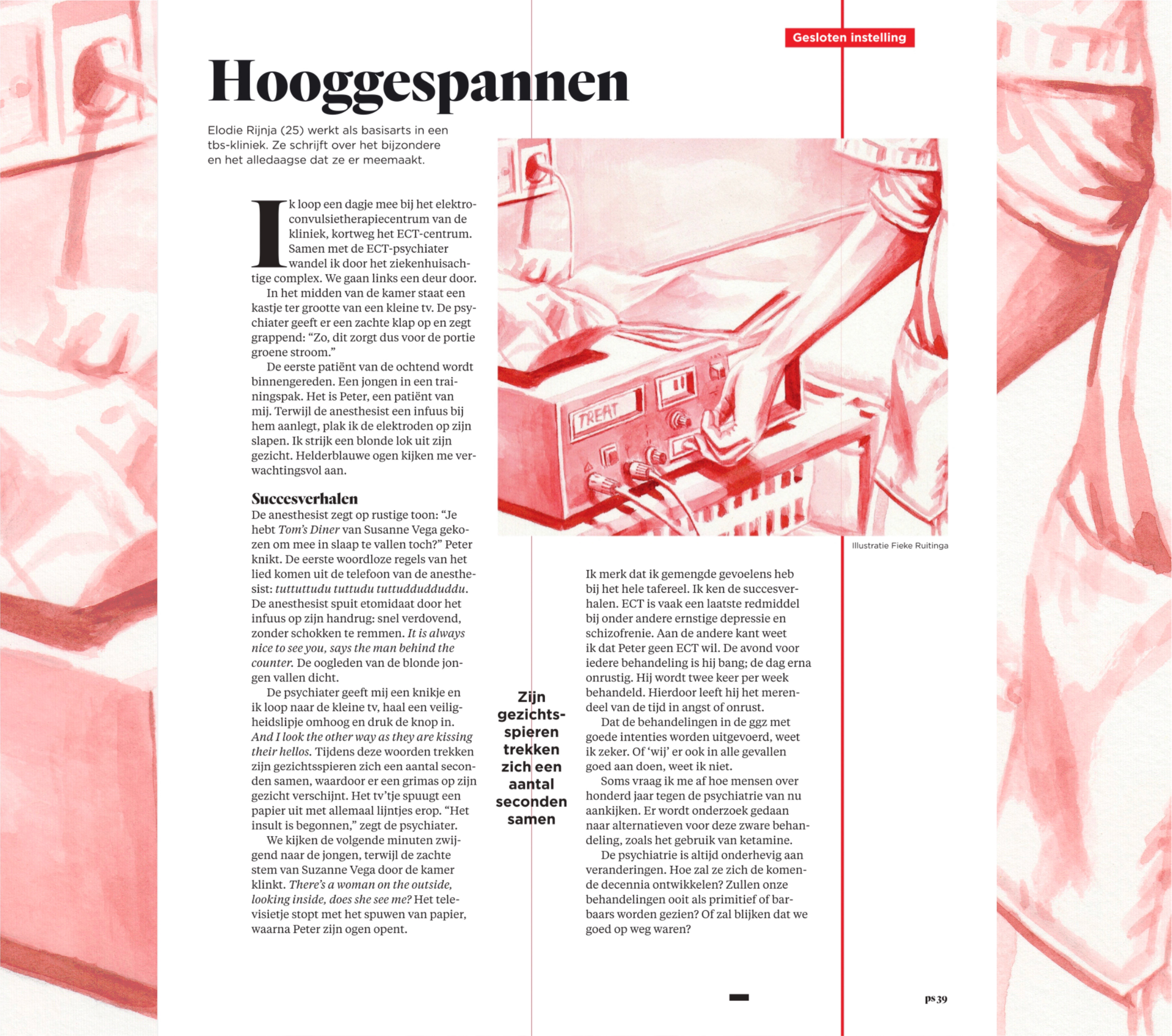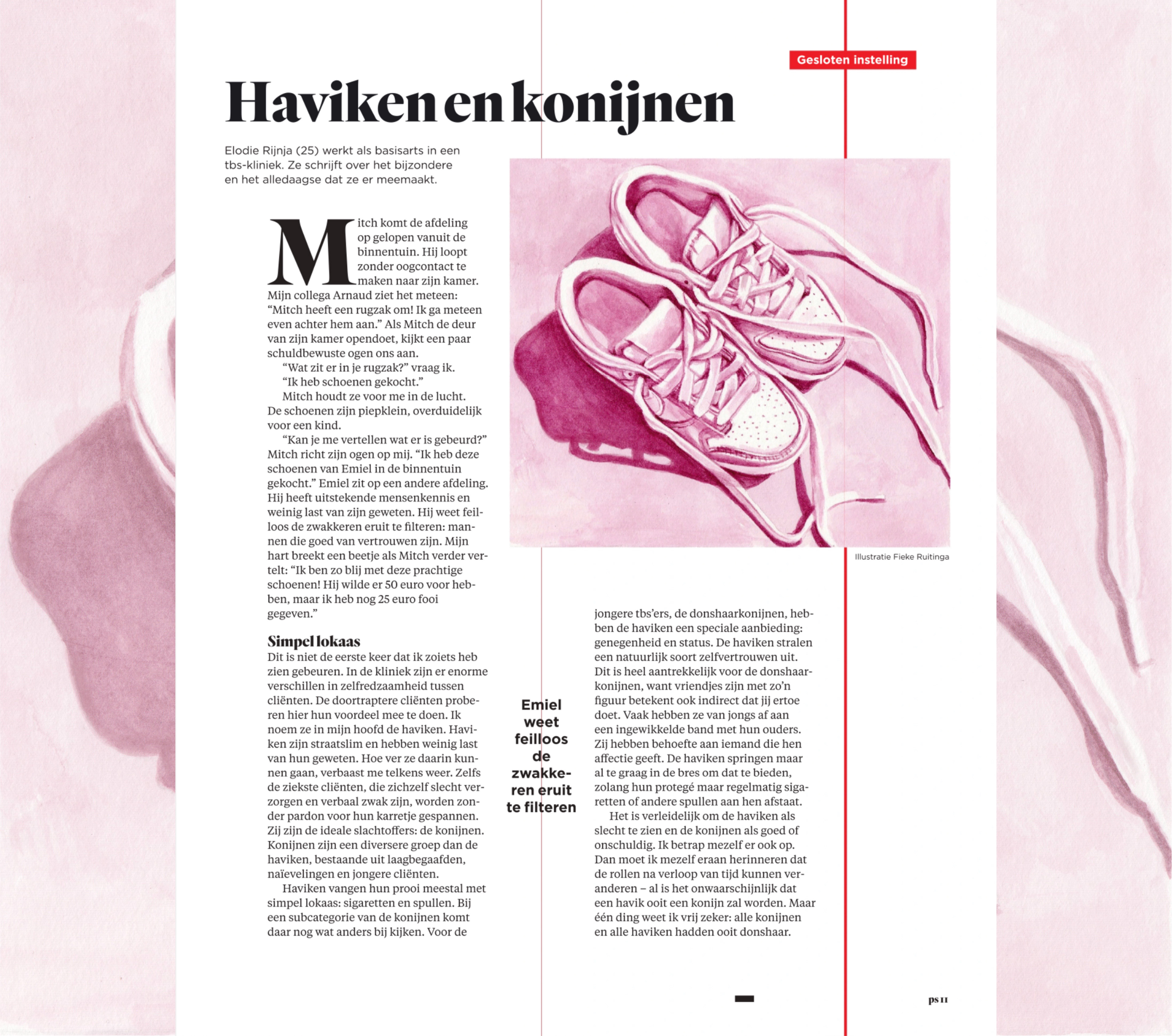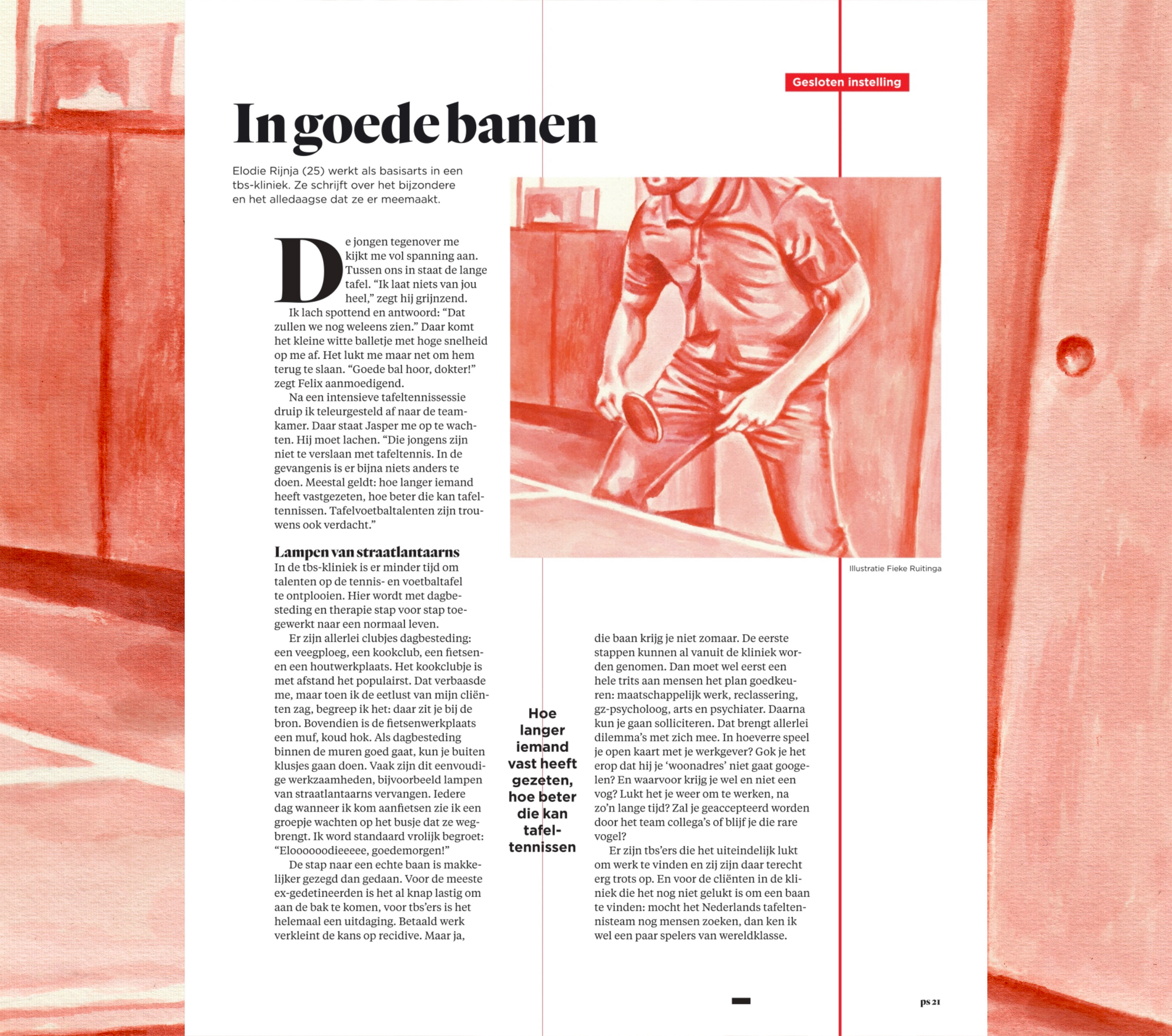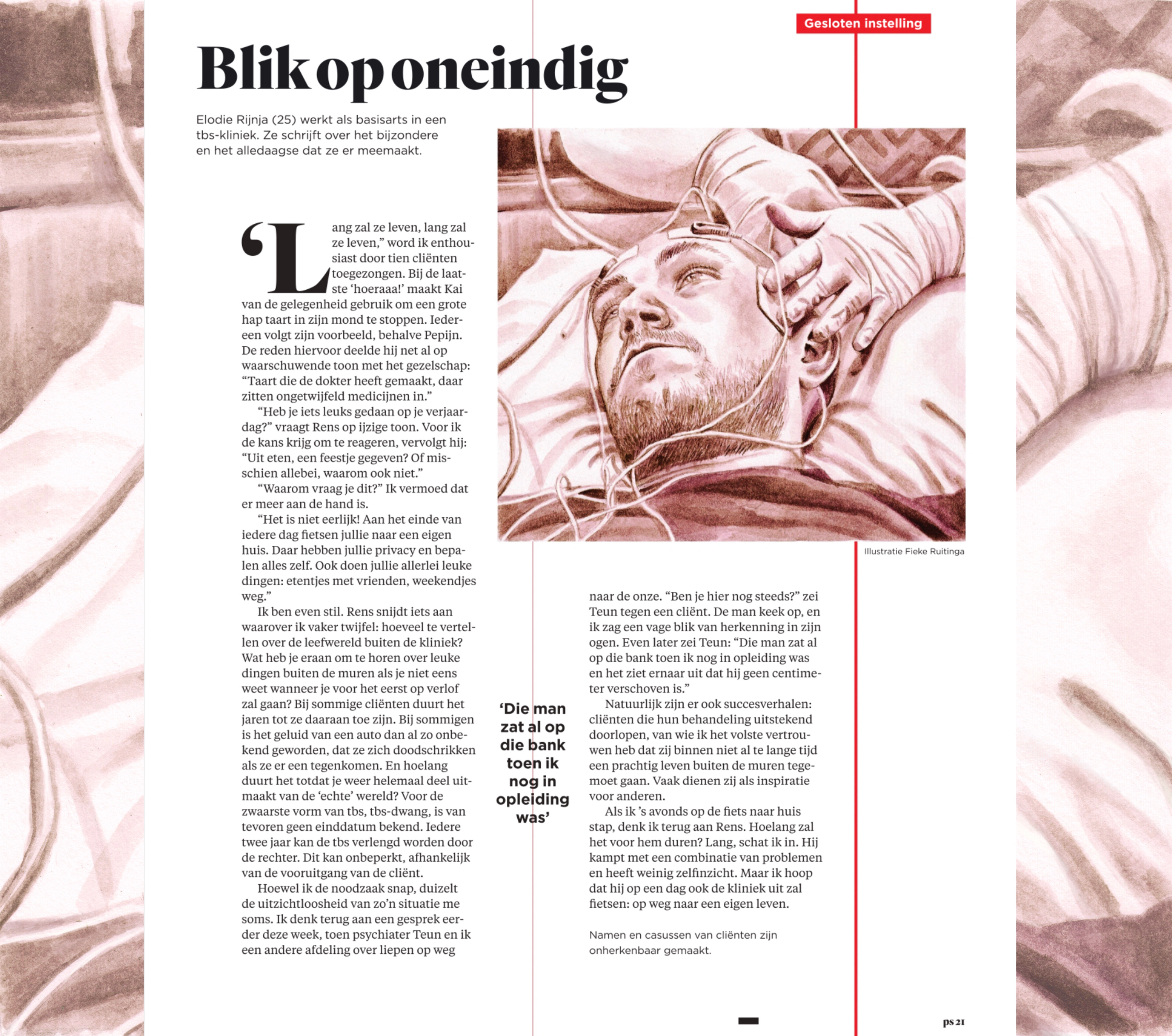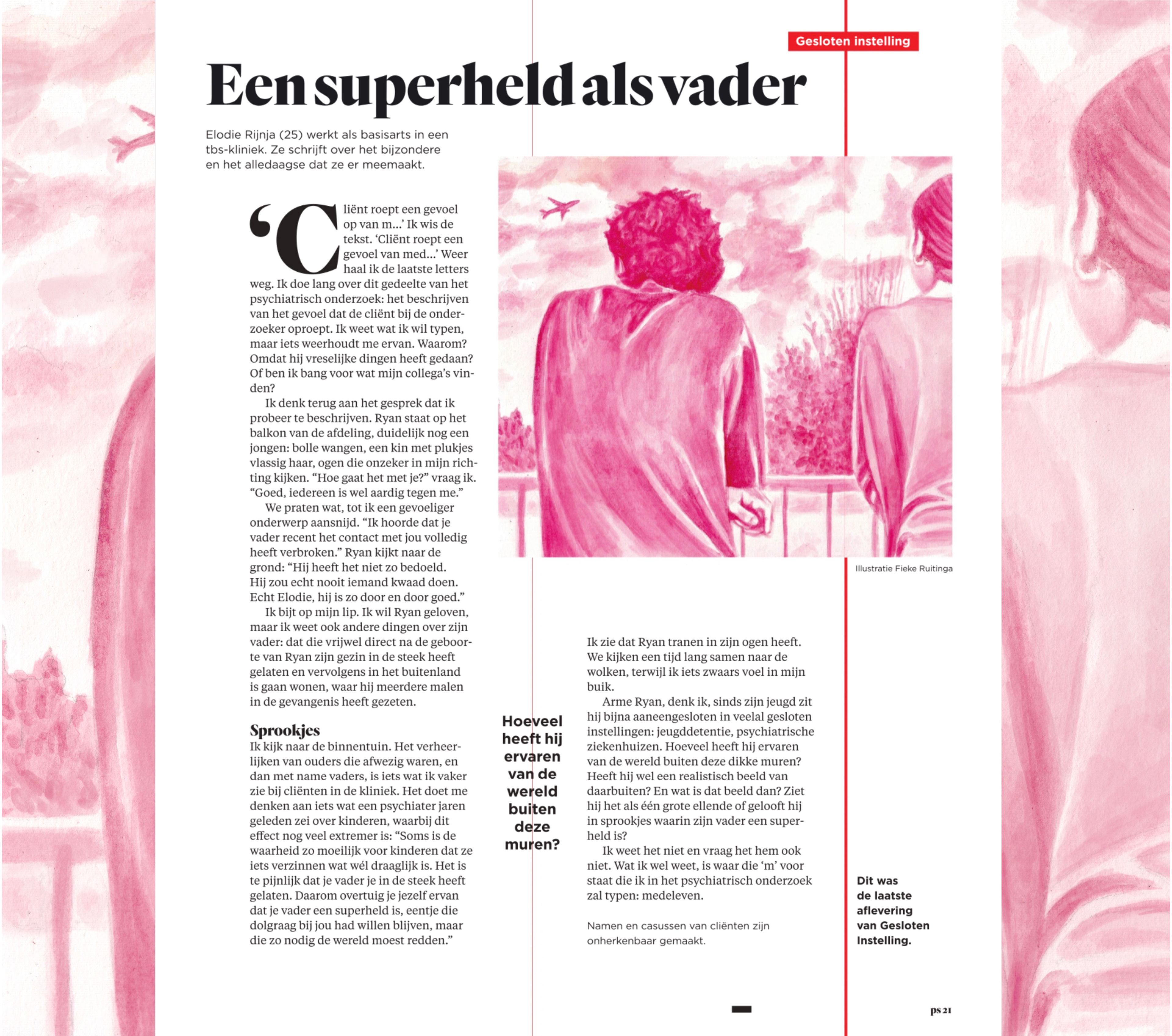 ERVARINGEN VAN EEN BASIS-ARTS IN EEN TBS-KLINIEK In deze wekelijkse column vertelt Elodie Rijnja wat ze als basis-arts meemaakt in een tbs-kliniek. Ik verzorgde het beeld.